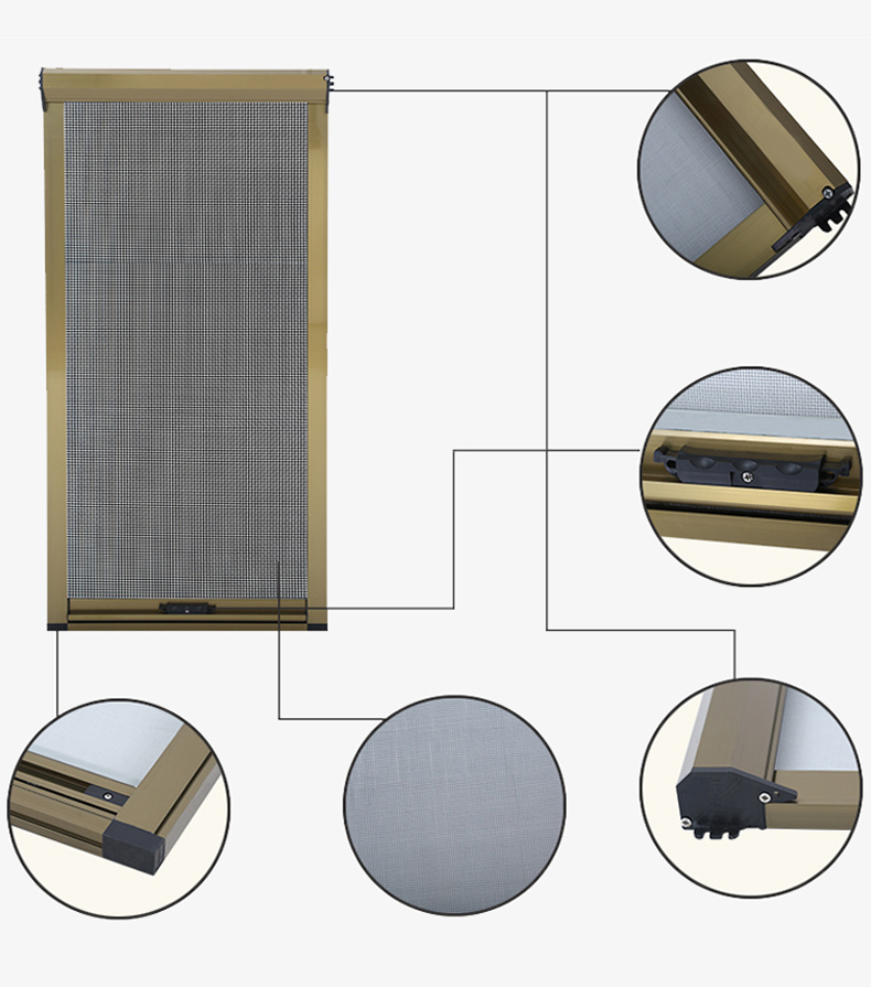 (2)采用優(yōu)質(zhì)液壓阻尼,確保紗網(wǎng)回卷時(shí)平穩(wěn)順暢、勻速柔和。